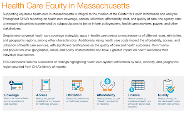 CHIA prioritizes the collection and analysis of reliable and meaningful health care information on subpopulations to inform Massachusetts policymakers, health care providers, payers, and other industry partners. Data sources to explore equity issues facing the Commonwealth include: